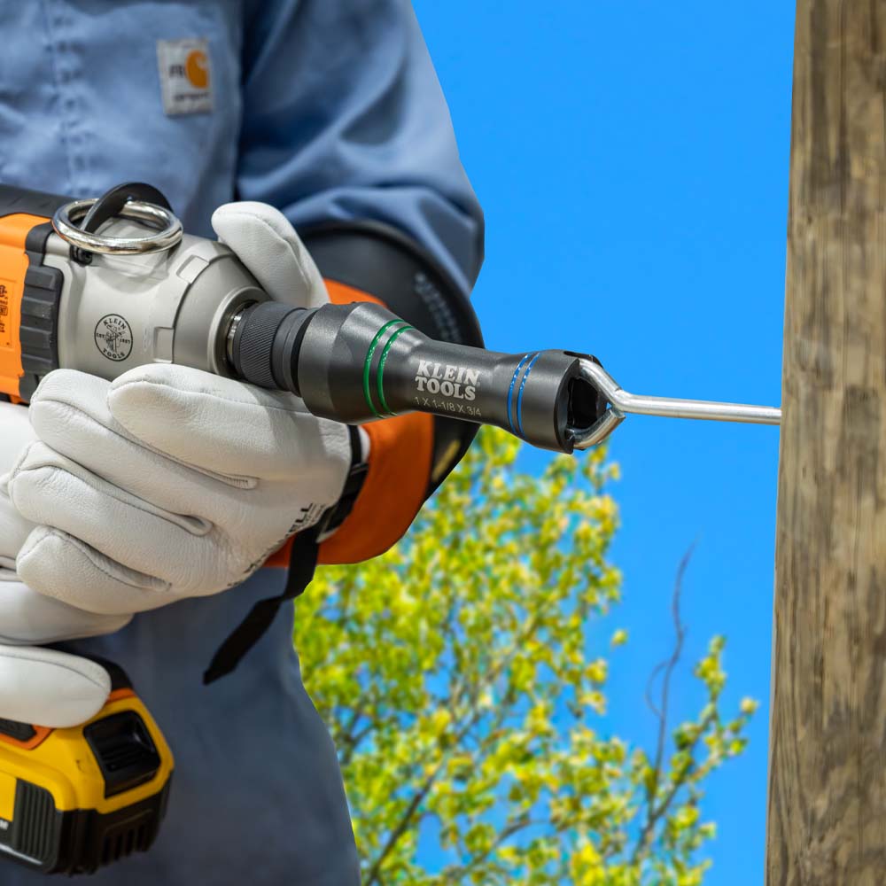 The Klein Tools versatile 5-in-1 Mini Impact Socket was designed for Linemen and Utility Workers. It features three popular square sizes that can be quickly and easily converted for a variety of utility type applications. The compact size allows for easier reach arounds. Designed with an alignment slot to tighten and loosen most pole hardware. The small profile and reduced weight helps reduce fatigue for Utility Workers.