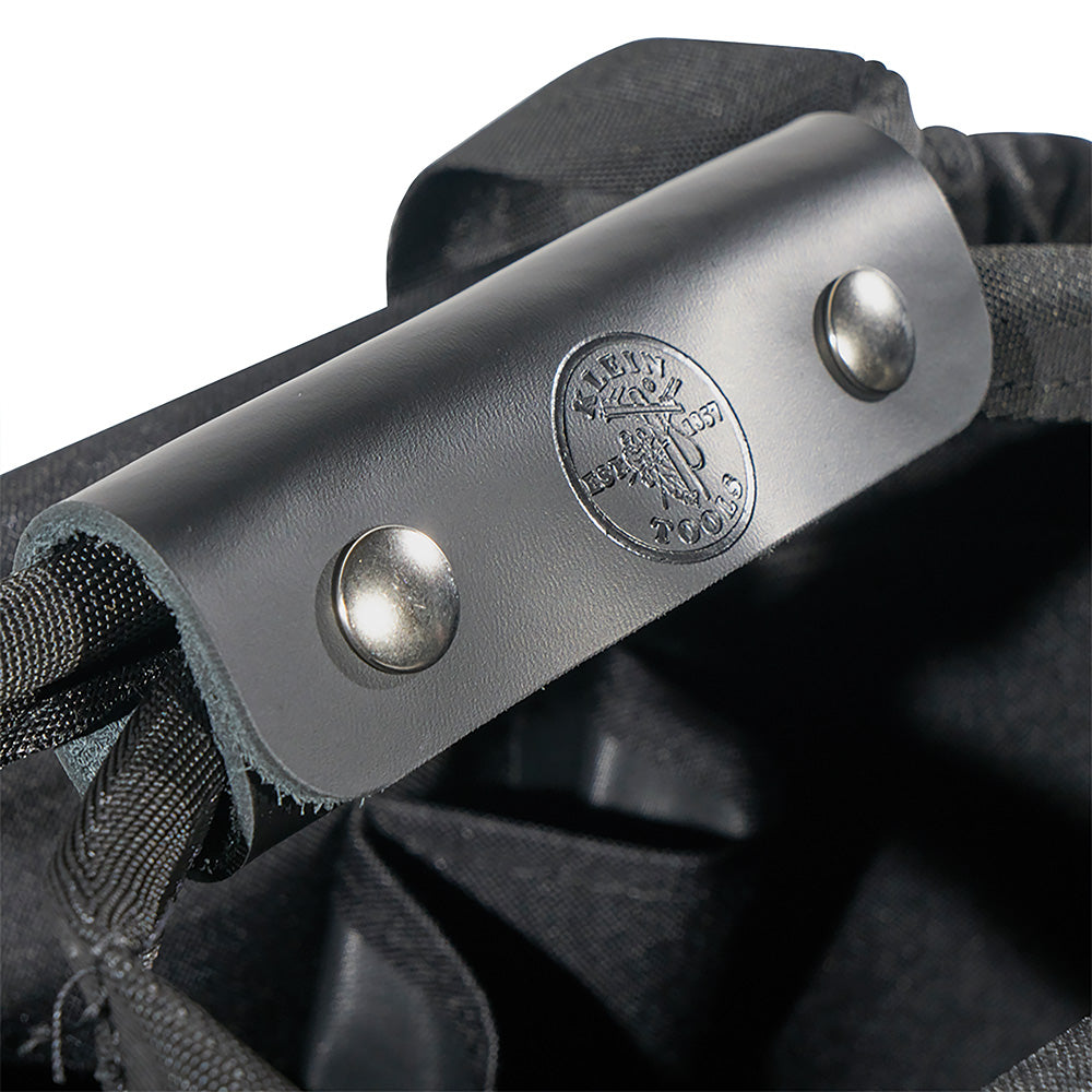 This Klein Tools Tool Tote is designed for the professional tradesman and the serious do-it-yourselfer. This tote has 17 pockets, plus a large interior compartment that easily accommodates a wide assortment of tools and supplies. It's constructed of rugged 600 x 300 denier polyester to resist wear and tear on the jobsite.